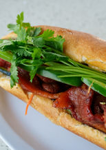 Crispy thin pancake made from rice flour and turmeric powder, stuffed with shrimp and veggies